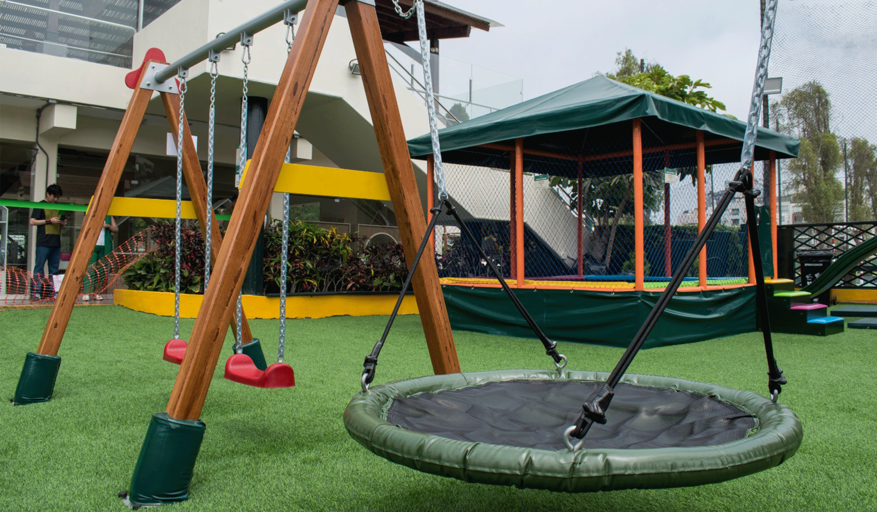 Esta nueva zona cuenta con un playground, columpio y saltarín, fabricados con materiales altamente resistente para ofrecer una diversión segura a nuestros pequeños. Además de contar con mayor capacidad y aforo.